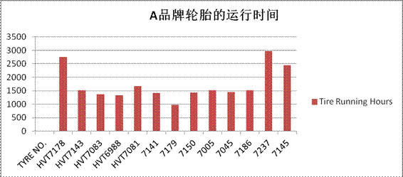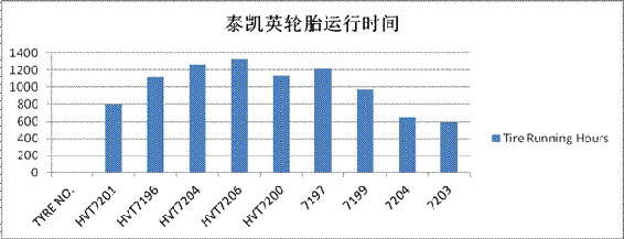 由于轮胎已经进入了磨损阶段,所以客户愿意支付轮胎款项。A品牌的平均运行时间为1590小时,轮胎CPH(每小时轮胎成本)为3.44斐济币。泰凯英工程车轮胎的平均运行时间为1100小时,轮胎CPH为2.78斐济币。通过对比我们明显的看出,泰凯英轮胎的轮胎小时成本低于A品牌。
